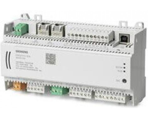 Это компактный комнатный контроллер, работающий на 24V. Он имеет корпус типа DIN. В контроллере предусмотрено 3 цифровых входа (DI), 4 универсальных входа (UI), 2 резистивных входа, интерфейс SCOM, 4 аналоговых выхода (AO) и 4 тиристорных выхода. Поддерживается протокол BACnet/IP.