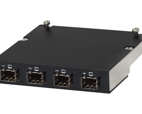 Модуль расширения предназначен для RuggedCom RSG2488. Он оснащен четырьмя слотами SFP. Поддерживаются интерфейсы 100Base-FX и 1000Base-X. SFP модули не входят в комплект поставки.