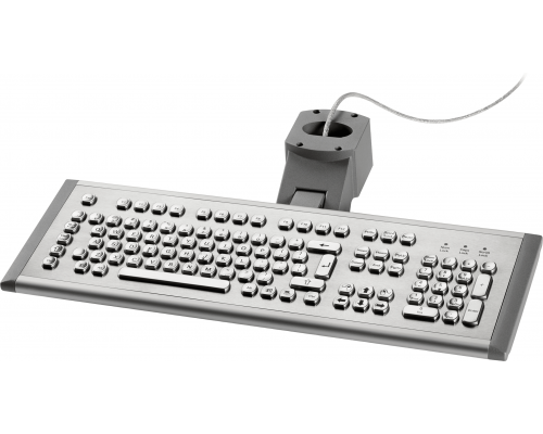 Клавиатура выполнена из нержавеющей стали и имеет степень защиты IP65. Предназначена для монтажа на устройствах Simatic HMI Pro. Доступны американская и английская раскладки. Предусмотрен настраиваемый угол наклона. Ширина клавиатуры составляет 400 мм, что соответствует устройствам 19" pro.