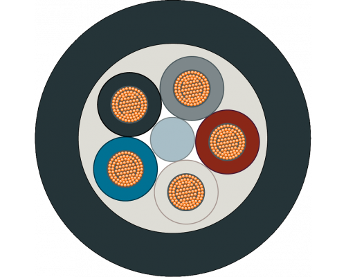 Предлагается кабель для питания, состоящий из пяти жил. Используется многожильный провод сечением 5 x awg24. Поставляется в бухтах максимальной длиной 1000 метров. Минимальный заказ – 20 метров, продается по метру.