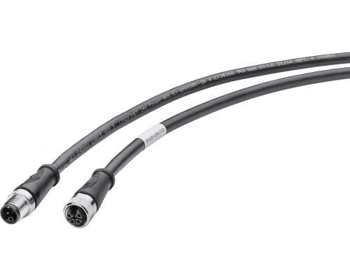 Кабель предназначен для подвода питания ET 200. Кабель имеет усиленную оплетку. Он оснащен двумя разъемами M12 – вилочной и розеточной частями. Кабель четырехполюсный. Длина кабеля составляет 5 метров. Тип разъема – L-code.