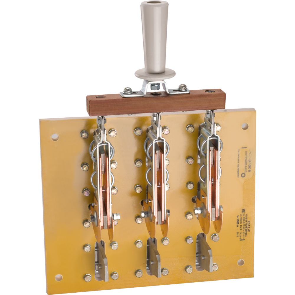 Разъединитель 2 полюсный на номинальный ток 2500 А, где установлена съемная рукоятка, а механическая износостойкость составляет 4000 циклов.