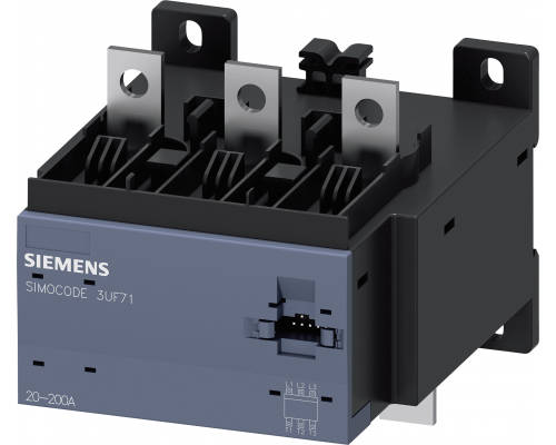 Модуль предназначен для использования с simocode pro. Диапазон измеряемых токов составляет 20...200А. Габаритная ширина модуля составляет 120 мм. Подключение осуществляется посредством шины.