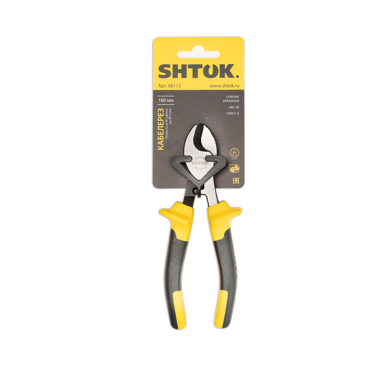 Кабелерез SHTOK 08112 используется в сборочном производстве. Рукоятки из двухкомпонентного пластика с упорами обеспечивают надежность захвата и удержания инструмента во время работы. Возможна резка одножильного и многожильного алюминиевого или медного кабеля.