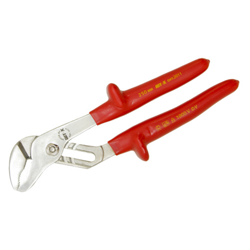Фото. Диэлектрические переставные клещи SHTOK 1000В 250 мм 08210 используются для работы под напряжением. Для надежности удержания инструмента предусмотрены рукоятки со специальными упорами. Клещи выполнены из качественной стали.
