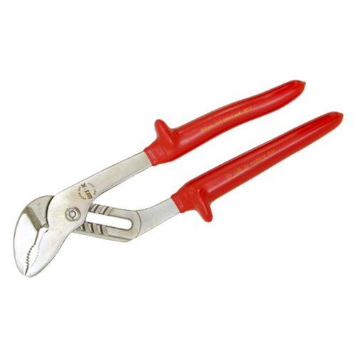 Диэлектрические переставные клещи SHTOK 1000В 300 мм 08211 оснащены удобными рукоятками со специальными упорами, которые способствуют надежному захвату. Инструмент используется для выполнения различных работ под напряжением, пока не поврежден верхний красный слой рукояток.