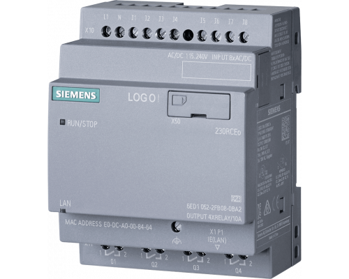 Модуль управления LOGO! 230RCEO основан на 6ED1052-2FB08-0BA2 и имеет защитное покрытие, позволяющее работать в диапазоне температур от -40 до +70 °C, а также при запуске при -25 °C. Обеспечивает питание / входы/выходы: 115 В/230 В/реле, 8 дискретных входов и 4 дискретных выхода. Память позволяет хранить до 400 блоков. Встроен Ethernet с веб-сервером, поддержка MQTT и возможность подключения к облаку. Поддерживается стандартная microSD карта для LOGO! Soft Comfort V8.4 или выше, а также возможность запуска более старых проектов.