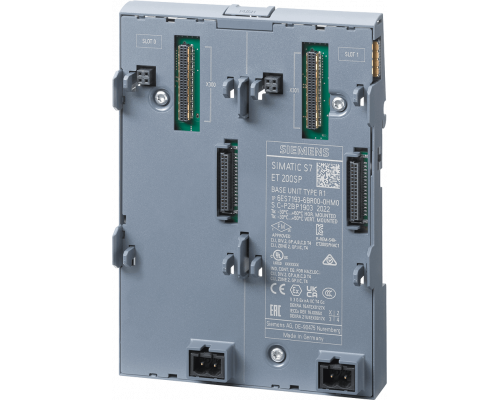 Блок питания SIPLUS ET 200SP BU типа M0 предназначен для работы в диапазоне температур от -40 до +70 °C. Он имеет две установки для интерфейсных модулей IM ми совместимых с R1, включая серверный модуль. Основан на базе 6ES7193-6BR00-0HM0.