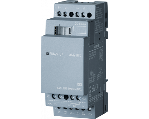 Модуль расширения предназначен для использования с logo! 8. Обеспечивается возможность работы в широком температурном диапазоне: рабочая температура от -40 до +70°C, пуск при -25°C. Имеет стойкое покрытие. Поддерживается питание от 12/24 В. Встроен модуль 2ai для измерения температуры в диапазоне -50...+200°C с использованием датчиков Pt100/1000.