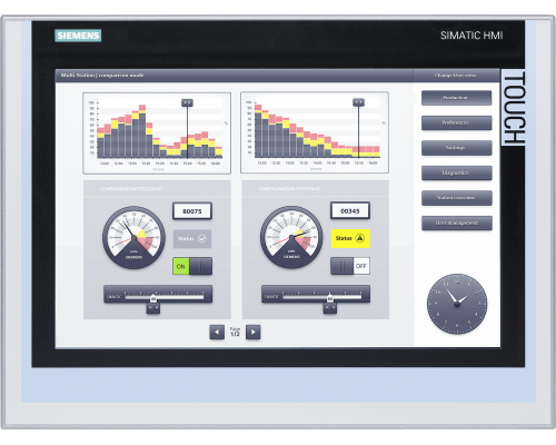 Панель оператора серии comfort предназначена для тяжелых условий применения и имеет стойкое покрытие. Оснащена широкоформатным TFT-дисплеем с диагональю 15" и поддержкой 16 миллионов цветов. Поддерживаются интерфейсы Profinet и MPI/Profibus DP. Доступен объем пользовательской памяти 24 Мб. Поддерживается WEС 2013 и настройка в среде WinCC Comfort V14 SP1 с HSP.