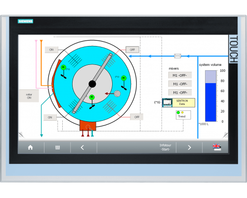 Панель оператора предназначена для тяжелых условий применения и имеет стойкое покрытие. В панели установлен широкоформатный TFT-дисплей с диагональю 22 дюйма и разрешением 16 миллионов цветов. Поддерживаются интерфейсы Profinet, MPI/Profibus DP. Доступен объем пользовательской памяти 24 Мб. Поддерживается WEС 2013 и настройка в среде WinCC Comfort V14 SP1 с HSP.
