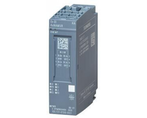 Модуль предназначен для использования с базовыми блоками типа X1. Обеспечивает возможность подключения четырех каналов NAMUR. Поддерживается диагностика каналов. Предназначен для использования в системах SIMATIC ET 200SP и ET 200SP HA.