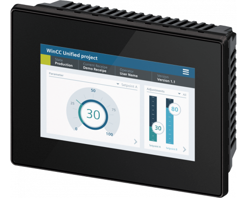 Панель оператора серии unified comfort MTP700. Оснащена широкоформатным TFT-дисплеем с диагональю 7" и поддержкой 16 миллионов цветов. Предусмотрено сенсорное управление. Интерфейс PROFINET обеспечивает интеграцию в сети промышленной автоматизации. Настройка осуществляется в среде разработки WinCC Unified Comfort V16. Панель поставляется без логотипа Siemens.