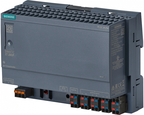 Представлен стабилизированный блок питания в формате ET 200SP. Входное напряжение составляет ~120/230 В, а выходное — =24 В/5 А. Подходит для использования в системах автоматизации.