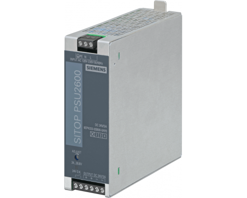 Представлен стабилизированный блок питания Sitop psu2600. Входное напряжение составляет ~230 В. Выходное напряжение — =24 В, выходной ток — 5 А. Подходит для использования в различных промышленных приложениях.