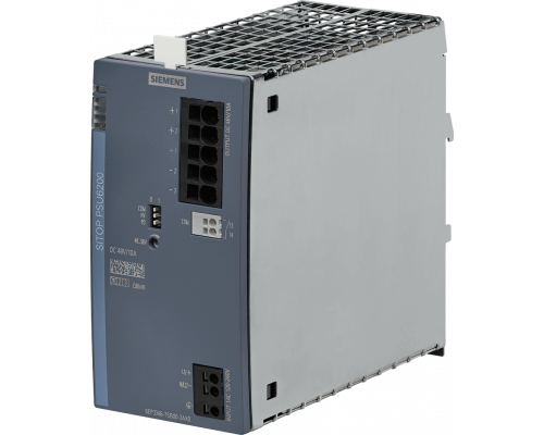 Блок питания Sitop обеспечивает стабильное питание 48 В и ток до 10 А. Предназначен для использования при входном напряжении 120/230 В переменного тока. Оснащен диагностическим интерфейсом для контроля и мониторинга состояния блока питания.