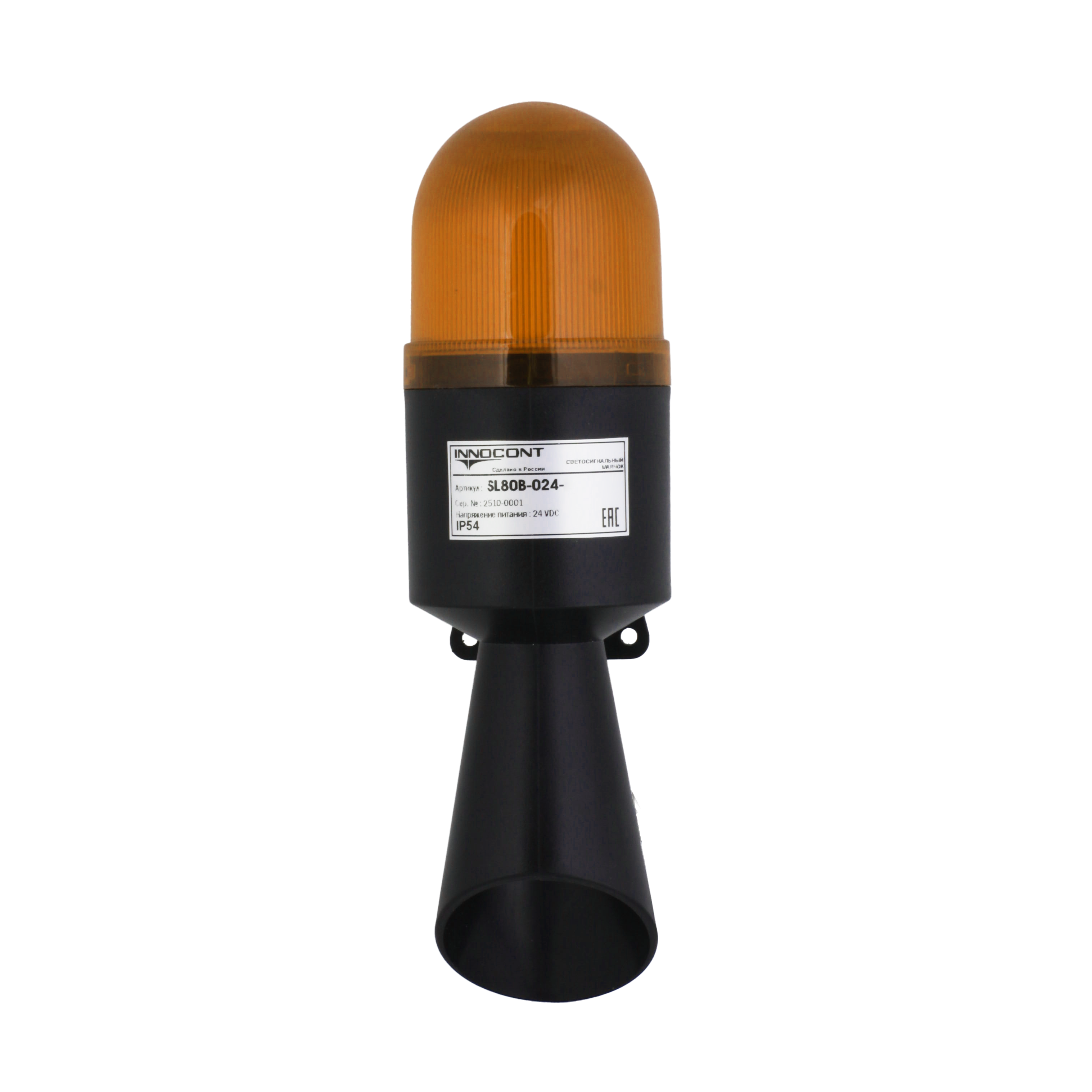 SL70B-HFL-024-Y Светосигнальный маячок с усиленным звуком INNOCONT, диаметр основания 70мм, L=245мм, светодиод(мигающее), зуммер 100дБ, цвет: желтый, 24VDC, IP54. кабель 0,7м