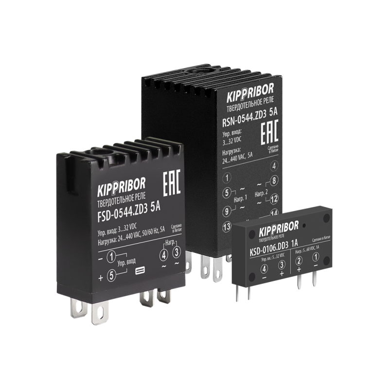 Реле серии FSD, KSD, RSN предназначены для коммутации резистивных и слабоиндуктивных нагрузок в цепях постоянного и переменного тока, обеспечивая развязку силовых и управляющих цепей. В конструкции используются ключи высокого класса для защиты от высоковольтных всплесков, а отсутствие подвижных частей гарантирует длительный срок службы. Модели с током до 5 А имеют корпус из алюминия для эффективного отвода тепла, а совместимость с промежуточными реле KIPPRIBOR серий MPR и RP расширяет возможности интеграции.
