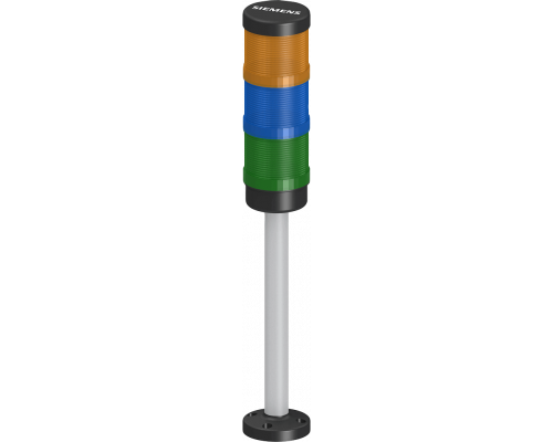 Колонка представляет собой комплексное устройство, оснащенное тремя светодиодами. В верхней части расположен постоянный желтый свет, в средней – постоянный синий свет, а в нижней – постоянный зеленый свет. Устройство питается от встроенного светодиода 24 В AC/DC. Предусмотрен присоединительный элемент для монтажа на трубе диаметром 250 мм. В комплекте идет лапа из пластмассы и труба.