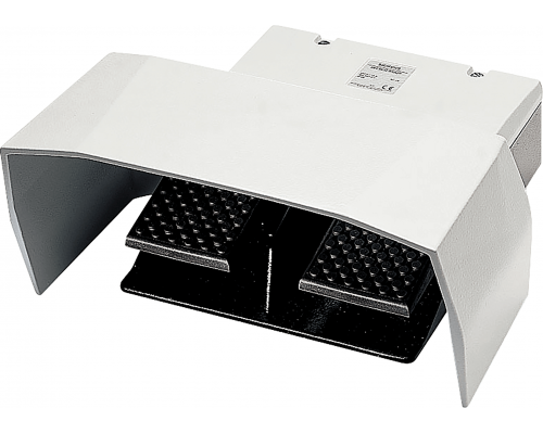 Кнопочный выключатель двухклавишный. Имеет ввод кабеля M20x1,5 и степень защиты IP65. Контакты: 1НО+1НЗ/1НО+1НЗ. Оснащен защитной крышкой.