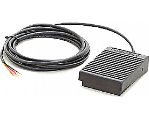 Ножной выключатель имеет пластиковый корпус и оснащен педальной кнопкой. Конструкция включает одну педаль без кожуха. Предназначен для использования в различных приложениях, требующих управления посредством нажатия на педаль.