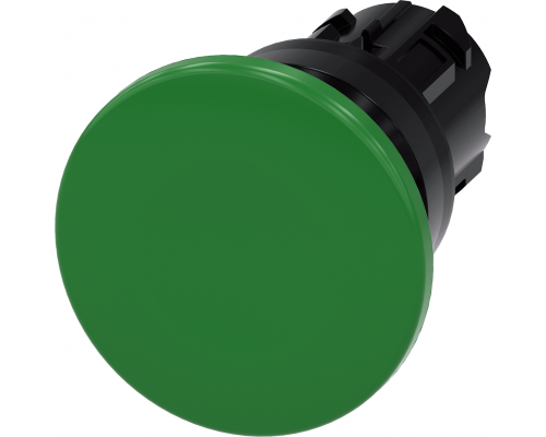 Актуатор предназначен для грибовидных кнопок диаметром 22 мм. Корпус выполнен из пластика. Кнопка имеет зелёный цвет и диаметр 40 мм. Актуатор без фиксации. Предусмотрена возможность нанесения кастомизированной маркировки или графических символов с использованием лазерной гравировки. Маркировка наносится в соответствии с выбором в конфигураторе sirius act (cin).