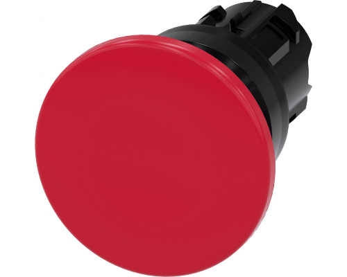 Актуатор предназначен для грибовидных кнопок диаметром 22 мм. Корпус актуатора изготовлен из пластика, имеет круглую форму. Цвет кнопки – красный. Габаритные размеры кнопки составляют 40 мм. Конструкция актуатора не предусматривает фиксации в нажатом положении.