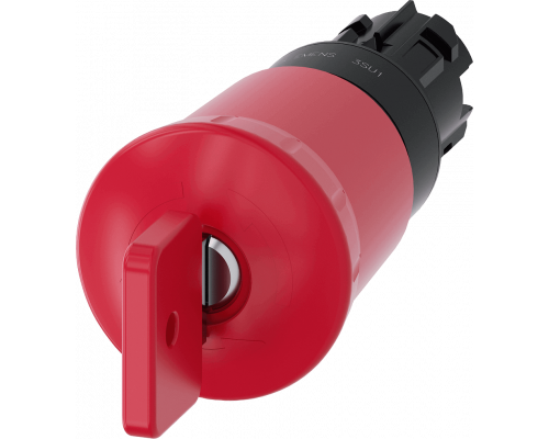 Актуатор представляет собой кнопку диаметром 22 мм, выполненную в красном цвете из пластика. Имеет диаметр кнопки 40 мм. Оснащен замком o.m.r. и номером замка 73037. Обеспечивается подтверждение срабатывания фиксацией (positive latching) и возможностью выпуска ключом (key-operated release).
