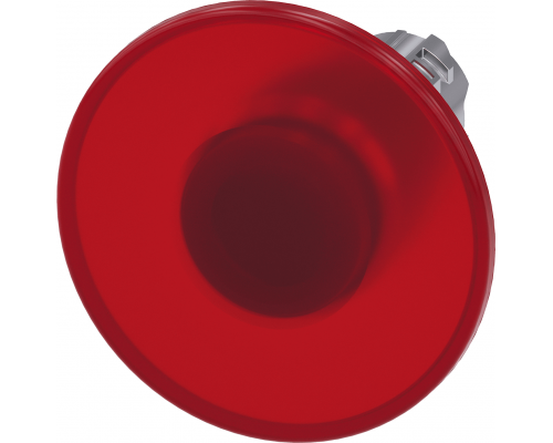 Актуатор грибовидной кнопки имеет диаметр 22 мм и круглую форму. Корпус выполнен из глянцевого металла красного цвета. Диаметр кнопки составляет 60 мм. Предусмотрена функция фиксации и деблокировка вытягиванием. Дополнительно предусмотрена возможность подсветки.