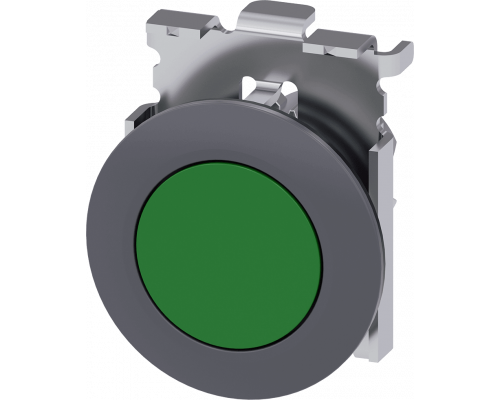Siemens 3SU1060-0JA40-0AA0 Актуатор кнопки, 30mm, кругл., металл матовый, кнопка зелёная, с фиксацией