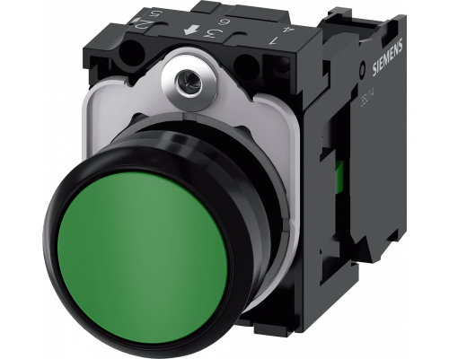 Siemens 3SU1100-0AB40-1BA0 Кнопка, 22mm, круглая, пластик, зелёная, плоская, контакты мгновенного действия