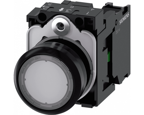 Siemens 3SU1100-0AB70-1BA0 Кнопка, 22mm, круглая, пластик, прозрачная, плоская, контакты мгновенного действия
