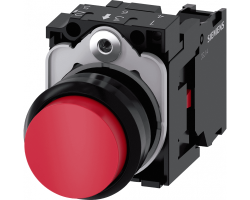 Siemens 3SU1100-0BB20-1CA0 Кнопка, 22 мм, круглая, красная, пластик, с держателем 1NC, мгновенного действия