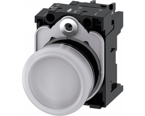 Световой индикатор имеет диаметр 22 мм и круглую форму. Корпус индикатора выполнен из пластика. Оснащен белым матовым рассеивателем. В комплекте присутствует держатель. Индикатор оснащен модулем подсветки со встроенным светодиодом. Питание осуществляется от сети переменного тока 110 Вольт. Подключение осуществляется посредством винтовых клемм.