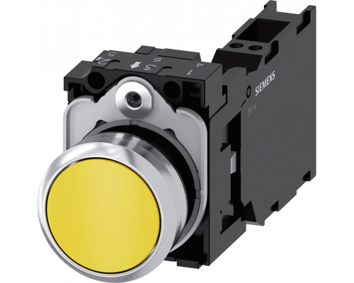 Siemens 3SU1150-0AB30-3FA0 Кнопка, 22mm, круглая, металлическая, глянцевая, желтая, плоская, 1NO+1NC