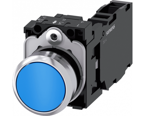 Siemens 3SU1150-0AB50-1FA0 Кнопка, 22mm, круглая, металлическая, синяя, плоская, 1NO+1NC, винтовые клеммы