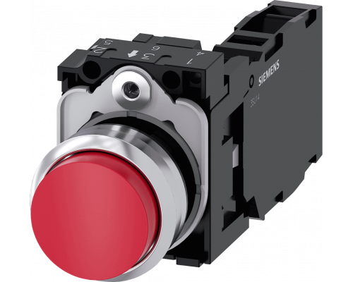 Кнопка имеет диаметр 22 мм и круглую форму. Корпус выполнен из металла с глянцевой отделкой и окрашен в красный цвет. Это выступающая кнопка с контактами мгновенного действия (1NO+1NC). Подключение осуществляется через винтовые клеммы и поставляется с держателем.