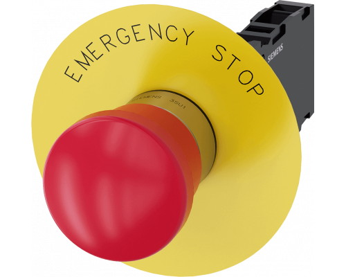 Кнопка имеет диаметр 22 мм и круглая форма. Корпус выполнен из металла с глянцевой отделкой и окрашен в красный цвет. Предусмотрена фиксация нажатого состояния и деблокировка путем вытягивания. В комплекте поставляется желтая подложка. На кнопке нанесена надпись 'emergency stop'. Кнопка имеет конструкцию с одним нормально открывающим (1NO) и одним нормально замкнутым (1NC) контактом. Подключение осуществляется посредством винтовых клемм. Предусмотрен держатель.