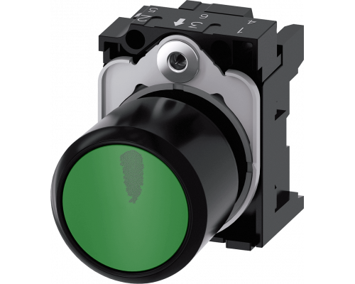 Siemens 3SU1200-0EB40-0AA0 Кнопка-актуатор, 22 мм, круглая, пластик, зеленая, без фиксации, с держателем
