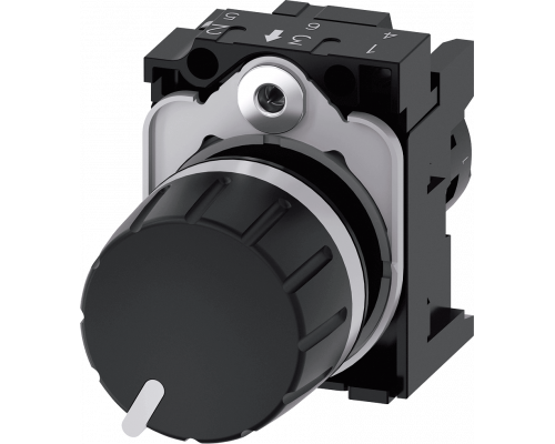 Siemens 3SU1200-2PW10-1AA0 Потенциометр, 22mm, пластиковый, чёрный, 2,2ком, с держателем, винтовые клеммы