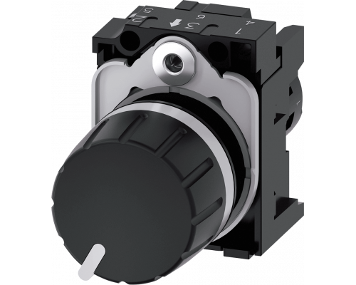 Siemens 3SU1200-2PU10-1AA0 Потенциометр, 22mm, круглая форма, пластиковый корпус чёрного цвета, сопротивление 100ком, с держателем и винтовыми клеммами