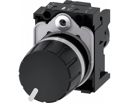 Siemens 3SU1200-2PV10-1AA0 Потенциометр, 22мм, пластиковый, черный, 470ком, с держателем, винтовые клеммы