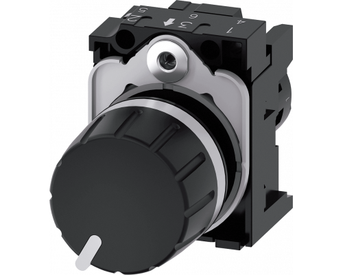 Siemens 3SU1200-2PS10-1AA0 Потенциометр, 22мм, пластиковый, черный, 10 кОм, с держателем, винтовые клеммы