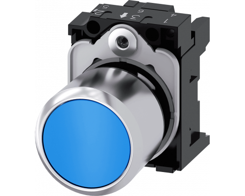 Siemens 3SU1250-0EB50-0AA0 Актуатор кнопки, 22 мм, круглой формы, с высоким фронтальным кольцом, металлический, синий, с плоской кнопкой