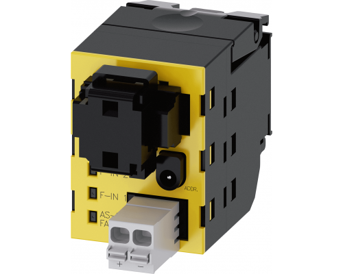 Модуль предназначен для использования с As-interface. Имеет два входа безопасности и один выход. Подключение осуществляется методом прокола изоляции и 2-полным коннектором с пружинными клеммами. Обеспечивает удобный монтаж на держателе актуатора. Цвет корпуса чёрный/жёлтый.