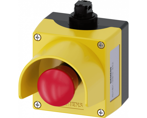 Корпус предназначен для командных устройств диаметром 22 мм. Материал корпуса – пластмасса, цвет – желтый. Оснащен защитным ободом. В комплекте один командный пункт – грибковый аварийный выключатель красного цвета диаметром 40 мм. Предусмотрена поворотная деблокировка. Подключение осуществляется на пружинных клеммах. Устройство предназначено для монтажа на полу с прорезанием изоляции сверху.