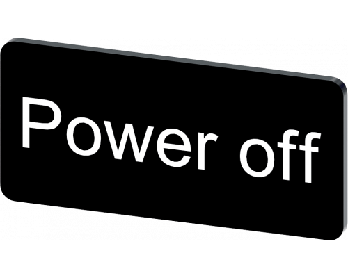Табличка предназначена для наклеивания или защелкивания на держателе. Ее размеры составляют 12.5 x 27 мм. Цвет таблички черный, надпись белая. На табличке нанесена маркировка: power off.