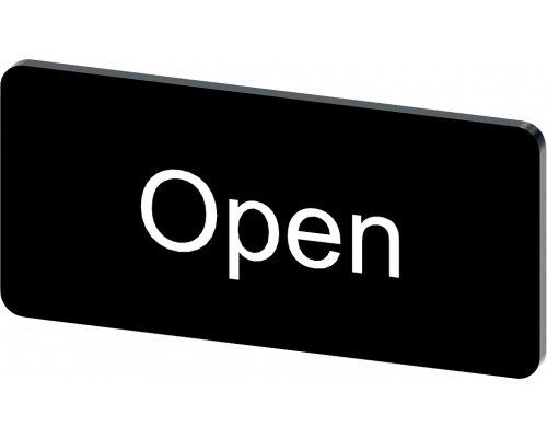 Табличка предназначена для наклеивания или защелкивания на держателе. Ее размеры составляют 12,5 x 27 мм. Цвет таблички черный, а надпись на ней белая. Маркировка включает слово "open".