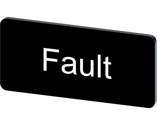 Табличка предназначена для наклеивания или защелкивания на держателе. Ее размеры составляют 12,5 x 27 мм. Цвет таблички черный, а надпись на ней белая. Маркировка включает в себя слово "fault".