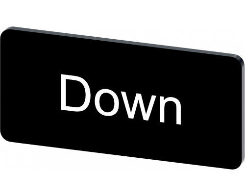 Табличка предназначена для наклеивания или защелкивания на держателе. Ее размеры составляют 12.5 x 27mm. Цвет таблички черный, надпись белая. Маркировка на табличке: 'down'.